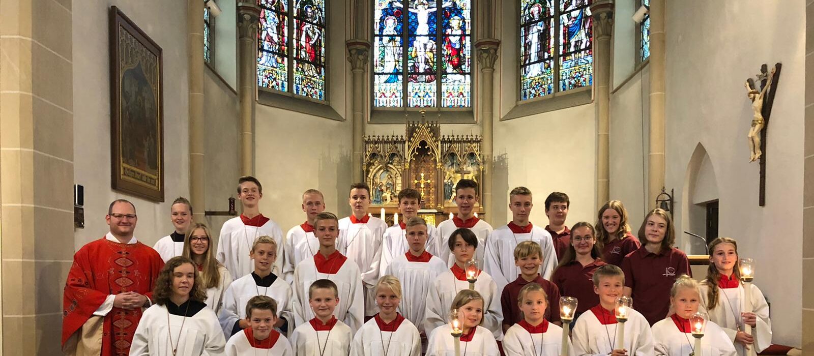 Das Gruppenbild zeigt die Messdienerschar mit Propst Dietmar Röttger & Vikar Michael Stiehler.