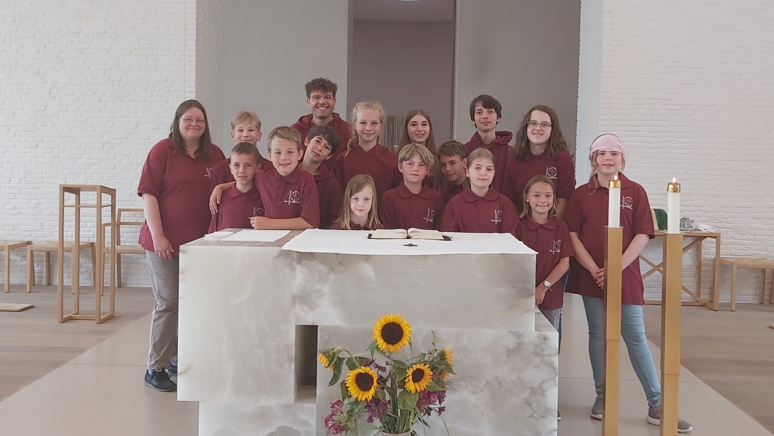 Aus diesem Anlass stand das Herz im Mittelpunkt des sonntäglichen Hochamtes, zu dem Propst Dietmar Röttger besonders sieben Ministranten begrüßen konnte. Einige Wochen liegen nun hinter diesen Mädchen und Jungen, dabei wurden sie mittwochs stets herzlich willkommen geheißen: Vier Ausbilderinnen – Marie Klösener, Marlene Methfessel, Ida Mittrup und Antonia Schütte – haben die Grundschüler Schritt für Schritt hineingeführt in den Ablauf der katholischen Messe. Dabei lernten die Minis beide Kirchen kennen und durften auch so manchen Blick hinter die Kulissen werfen.