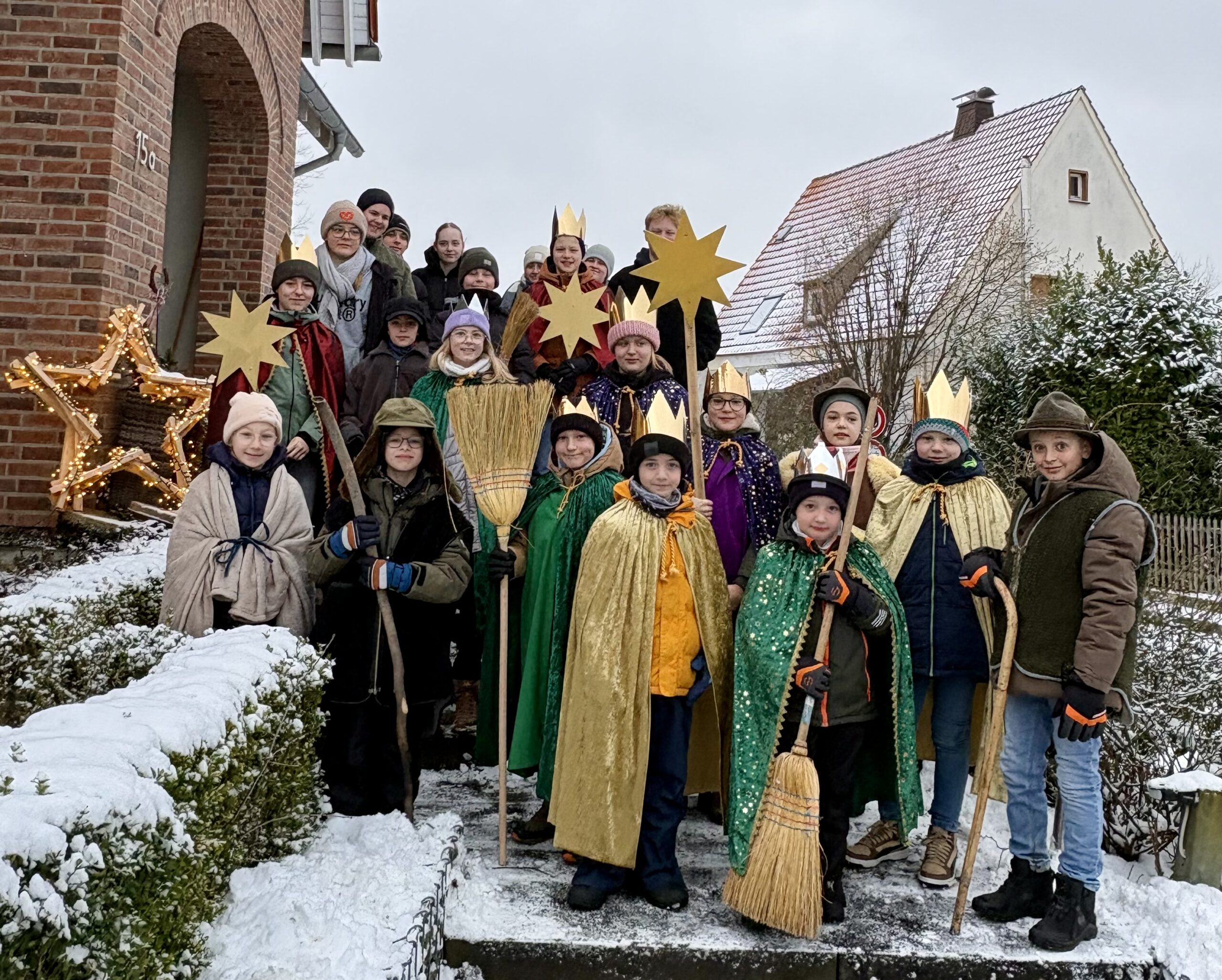 Trotz Schnee und Kälte waren die Gruppen hochmotiviert und hatten viel Spaß dabei. Herzlichen Dank allen, die diese so freundlich an den Türen empfangen, großzügig gespendet und zusätzlich die Sternsinger:innen mit Süßigkeiten und Taschengeld belohnt haben.