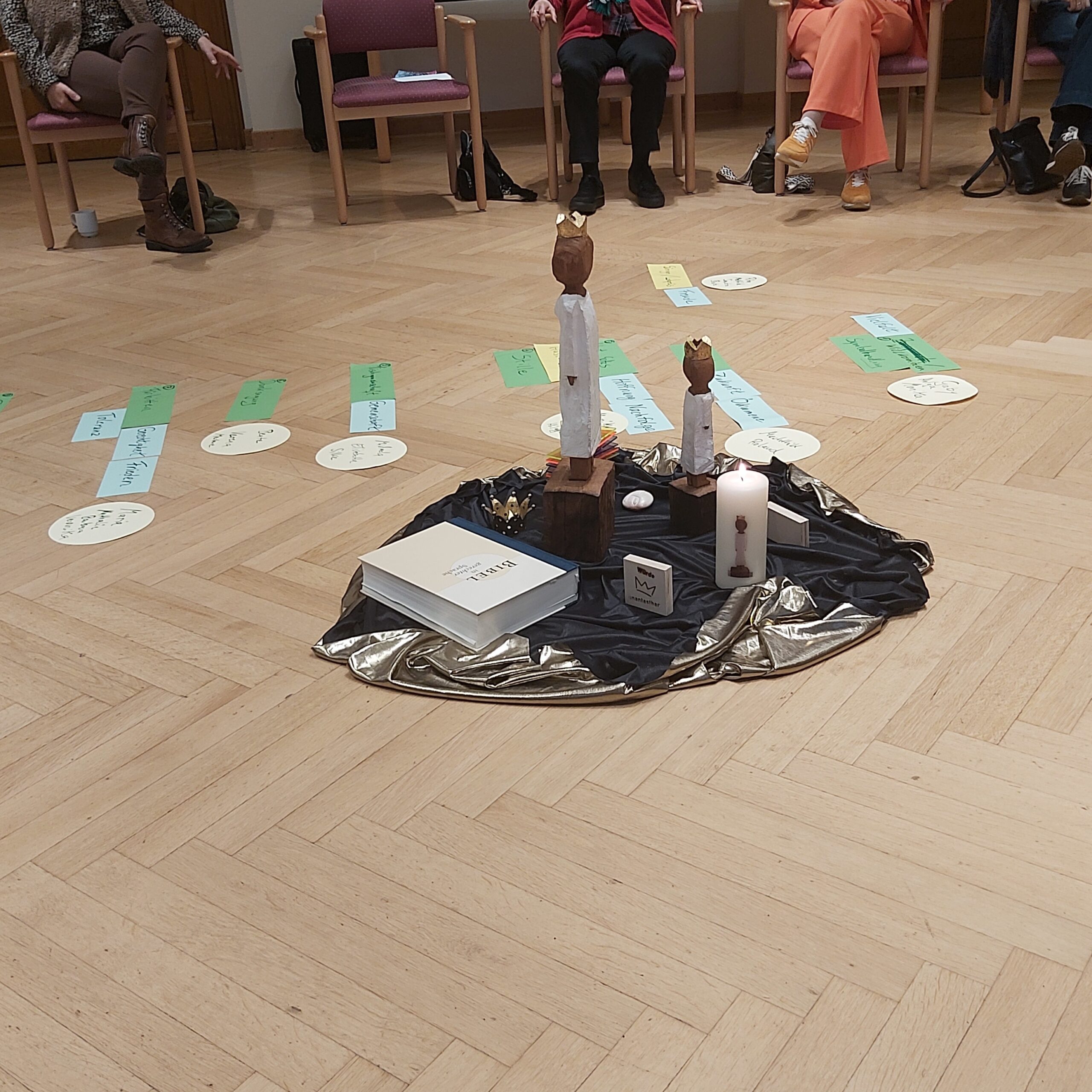Rahmen der Schöpfungswoche der christlichen Kirchen hatte der AK „Trauer“ einen abendlichen Pilgerspaziergang durch die Woeste angeboten. Auftakt dazu bot die Hl. Messe, die in der Kapelle in Bettinghausen unter musikalischer Begleitung der Musikgruppe aus Hl. Kreuz gefeiert wurde. Danach ging es gemeinsam durch die Woeste nach Ostinghausen zum Friedhof. Mit dabei war ein stiller Mahner, ein König, gefertigt vom Künstler Ralf Knoblauch, der auf die Würde in allen Dingen hinwies. Auf dem Weg gab es drei Stationen mit Texten und Musik von der Musikgruppe Hl. Kreuz. Schweigend und hörend, sowie ins gemeinsame Gespräch vertieft, all das hatte Raum auf dem Weg. Bei den Wasserbüffeln gab es ein spontanes Ständchen für die Tiere, welchem sie mit Neugier, aber auch in gebührendem Abstand lauschten. Auch den Sonnenuntergang konnte die Gruppe vom Aussichtsturm in der Woeste erleben. Am Friedhof endete der Pilgerweg an der dritten Station des neuen Trauer- und Trostweges auf dem Friedhof, der insgesamt 4 Stationen umfasst. An den Steelen mit den „Ich bin Worten Jesu“ empfingen alle den abendlichen Segen und mit der Dunkelheit traten alle den Heimweg an.