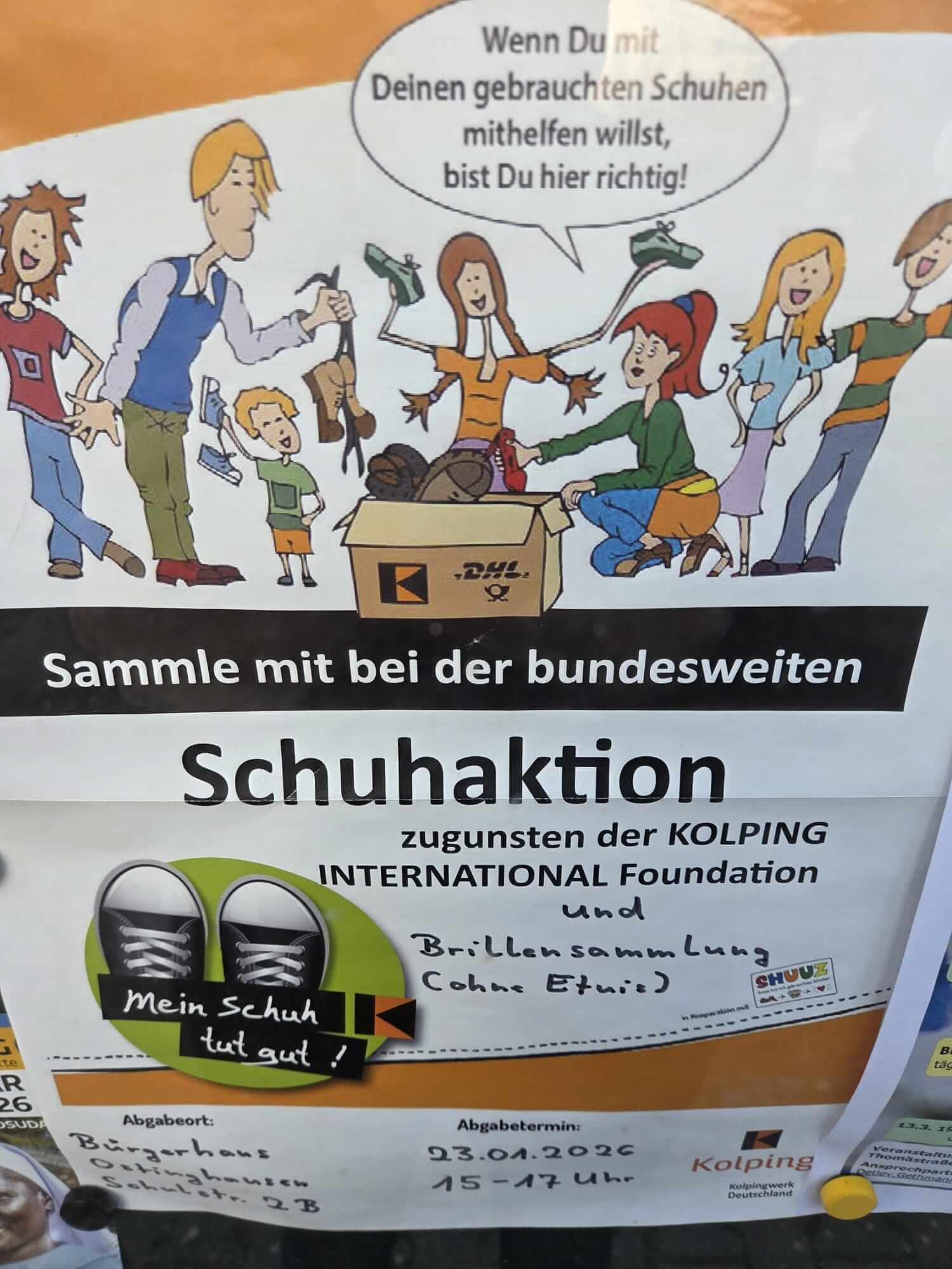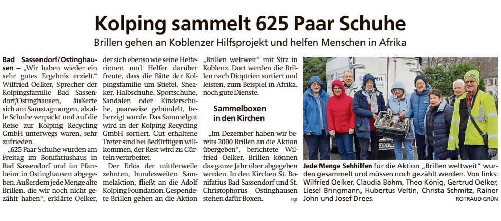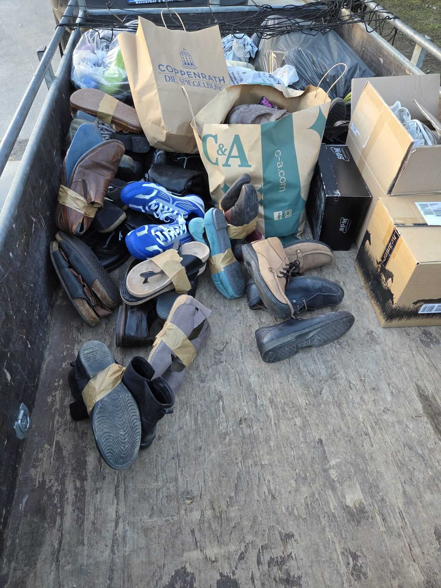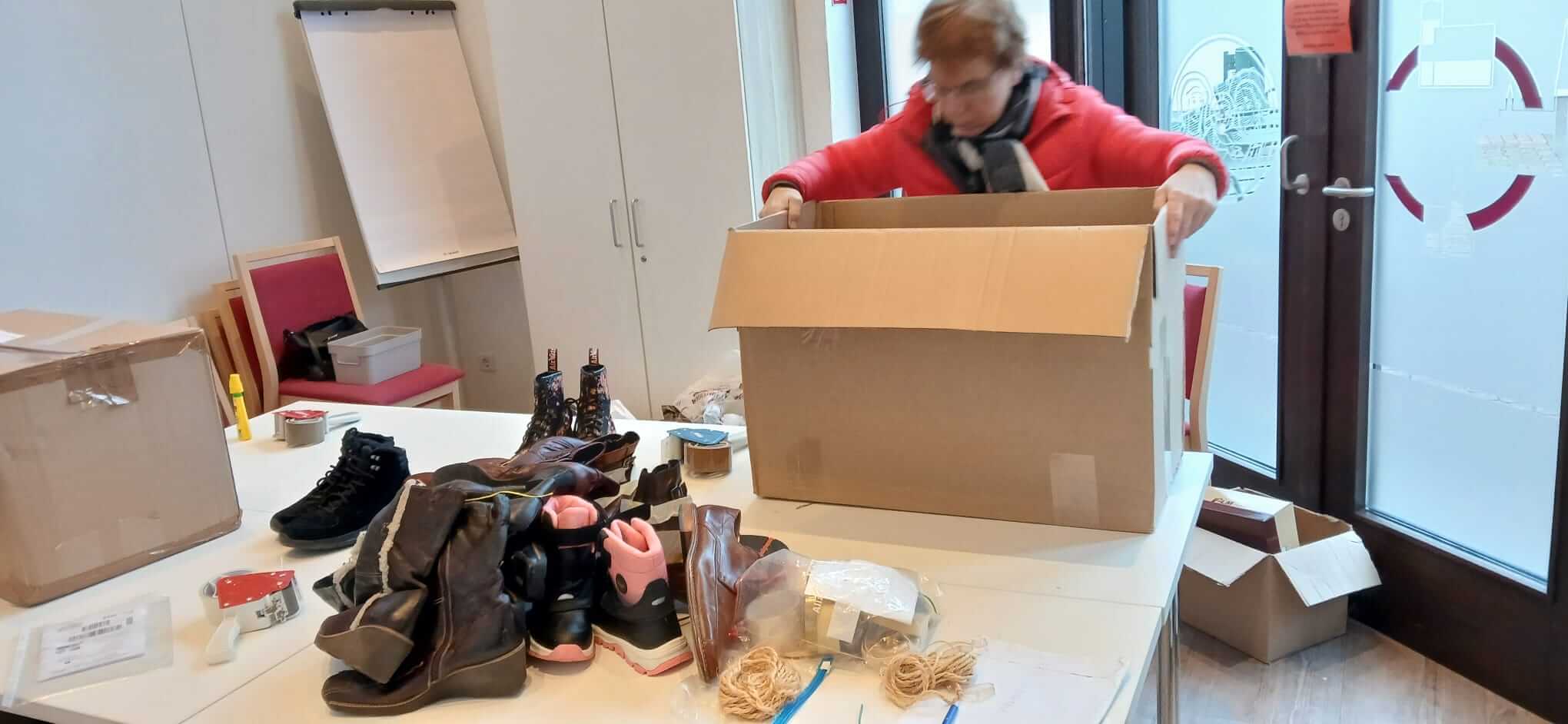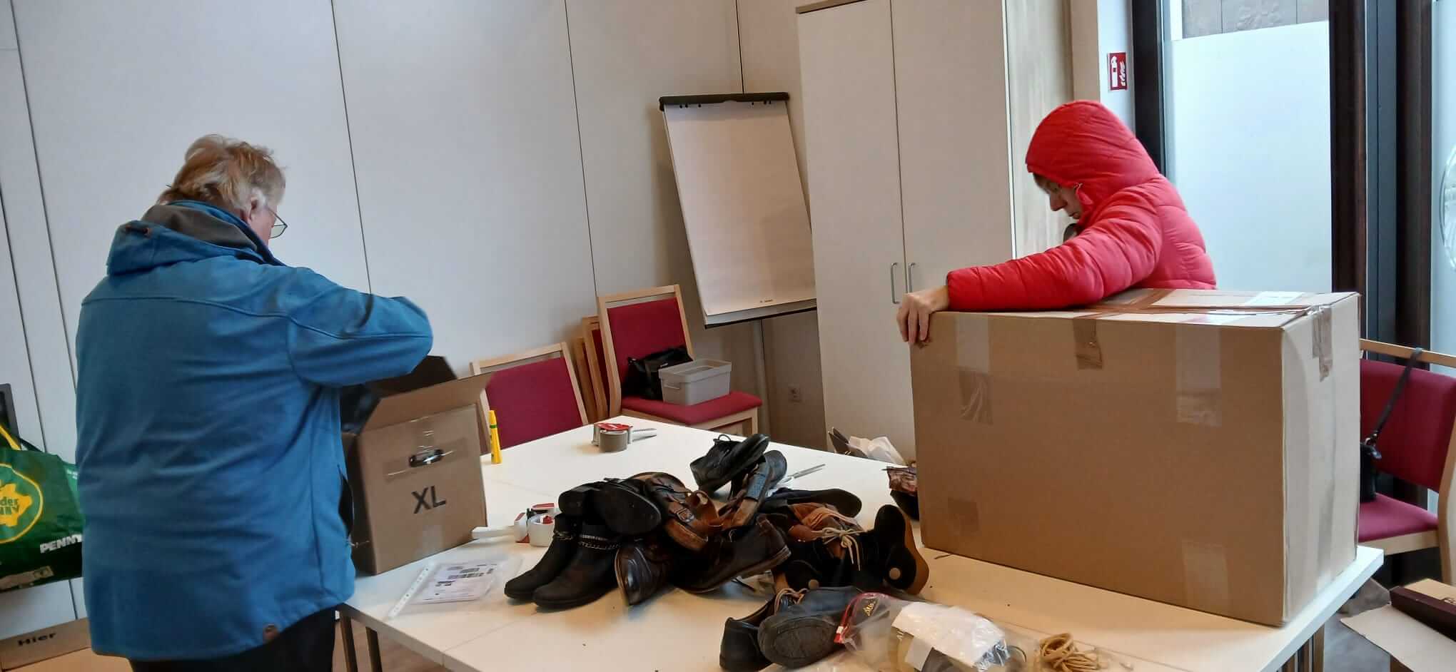 Insgesamt in 4 Stunden Sammlung kamen 625 Paar Schuhe und mehrere hundert Brillen zusammen. Vom Vorstand wurden die Schuhe in 27 großen Kartons verpackt und per Post verschickt. Die Brillen werden zu einem späteren Zeitpunkt verpackt.